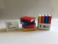 Borrachas coloridas em forma de livro.
