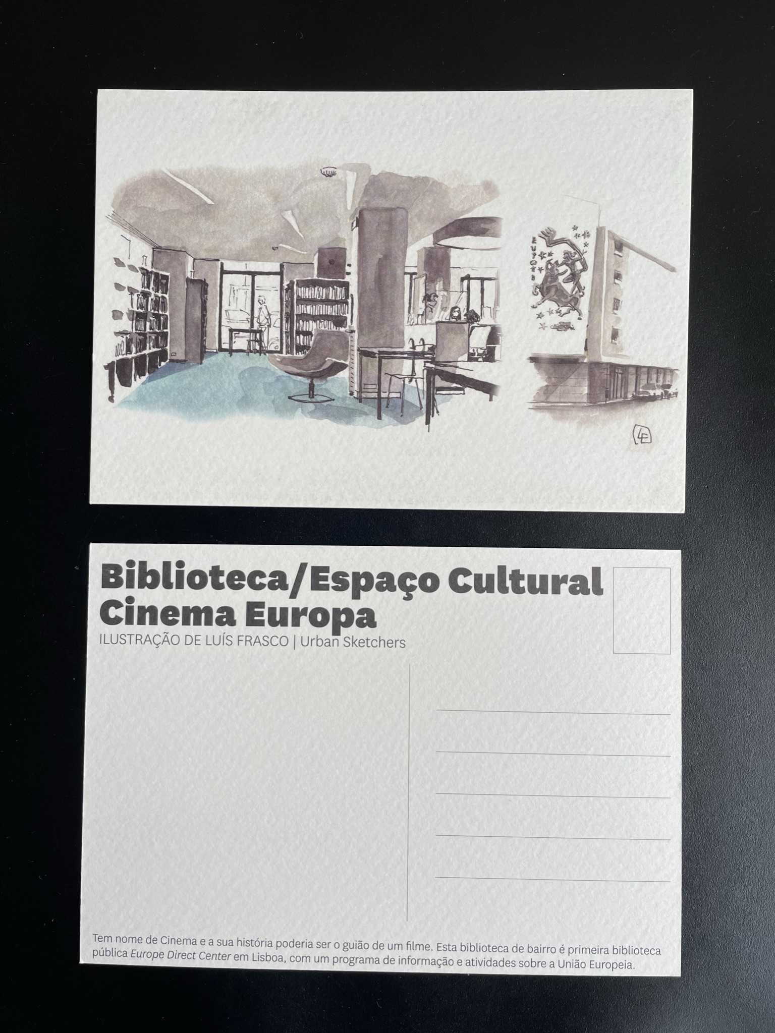 HomePostaisBiblioteca/Espaço Cultural Cinema Europa Biblioteca/Espaço Cultural Cinema Europa0,45€ com IVA Ilustração de Luís Frasco. Biblioteca/Espaço Cultural Cinema Europa quantity Adicionar ao carrinho Category: Postais Product ID: 14462 Description Description Postal Related products Desenhos de António Jorge Gonçalves a partir da intervenção plástica no tapume Metro/Alameda Coleção com 20 postais 5,17€ com IVA Adicionar ao carrinho Biblioteca dos Coruchéus Ilustração de Pedro Cabral. 0,45€ com IVA Adicionar ao carrinho Biblioteca Orlando Ribeiro Ilustração de Pedro Loureiro. 0,45€ com IVA Adicionar ao carrinho Timor. Knar feton Nian; tarefas Femininas; Women Task Sebastião Silva 2,58€ com IVA Adicionar ao carrinho