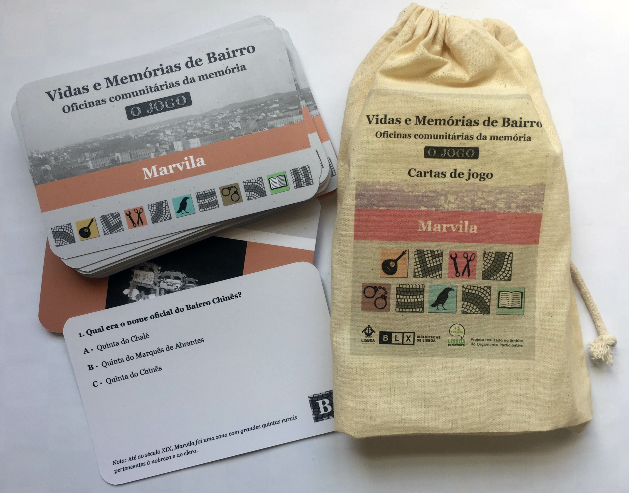HomeMerchandisingJogos e brinquedosCartas do Jogo “Vidas e Memórias de Bairro – oficinas comunitárias da memória” – Marvila Cartas do Jogo “Vidas e Memórias de Bairro – oficinas comunitárias da memória” – Marvila6,36€ com IVA Saco com cartas sobre Marvila. Cartas do Jogo "Vidas e Memórias de Bairro - oficinas comunitárias da memória" - Marvila quantity Adicionar ao carrinho Categories: Jogos e brinquedos, Merchandising Product ID: 5190 Description Description Saco com cartas sobre Marvila. You may also like… Jogo "Vidas e Memórias de Bairro - oficinas comunitárias da memória" - Penha de França Jogo de tabuleiro, composto por saco com cartas sobre Penha... 12,72€ com IVA Adicionar ao carrinho Related products Caneca BLX - Portas abertas para mentes abertas Caneca em fibra de bambu. 2,44€ com IVA Adicionar ao carrinho Caderno BLX Preto, A5 Caderno A5, folhas lisas, capa dura preta, com elástico. 2,80€ com IVA Adicionar ao carrinho Lápis BLX - Bibliotecas para todas as famílias Lápis de carvão preto. 1,14€ com IVA Adicionar ao carrinho Cadernos MIMOS A5, Azul Caderno A5, branco, com elástico e rebordo de folhas azul.... 6,59€ com IVA Adicionar ao carrinho