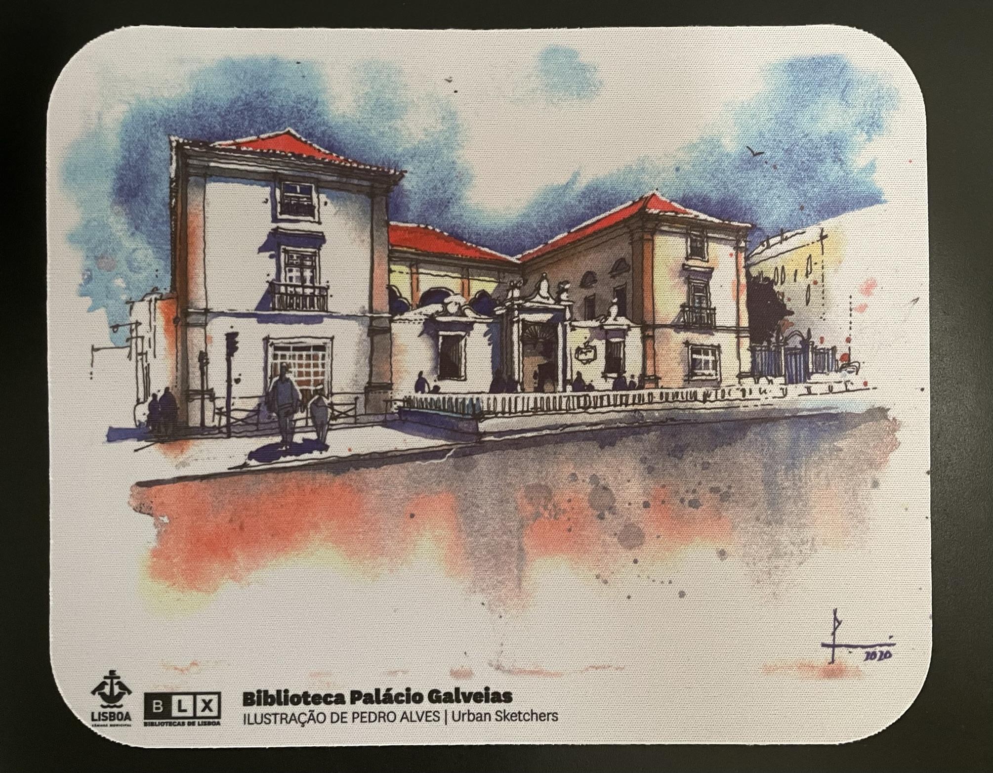 HomeMerchandisingAcessórios - informáticaTapete para rato – Biblioteca Palácio Galveias Tapete para rato – Biblioteca Palácio Galveias2,00€ com IVA Ilustração de Pedro Alves. Tapete para rato - Biblioteca Palácio Galveias quantity Adicionar ao carrinho Categories: Acessórios - informática, Merchandising Product ID: 12183 Description Description Tapete para rato. Related products Caneta BLX - Tirar ideias da prateleira Esferográfica prateada, com ponteiro para ecrã tátil. 0,96€ com IVA Adicionar ao carrinho Cartas do Jogo "Vidas e Memórias de Bairro - oficinas comunitárias da memória" - Penha de França Saco com cartas sobre Penha de França. 6,36€ com IVA Adicionar ao carrinho Saco BLX - As Pessoas fazem as Bibliotecas Saco de pano com 140 gr., cor preta. 2,88€ com IVA Adicionar ao carrinho Caderno BLX Preto, A5 Caderno A5, folhas lisas, capa dura preta, com elástico. 2,80€ com IVA Adicionar ao carrinho